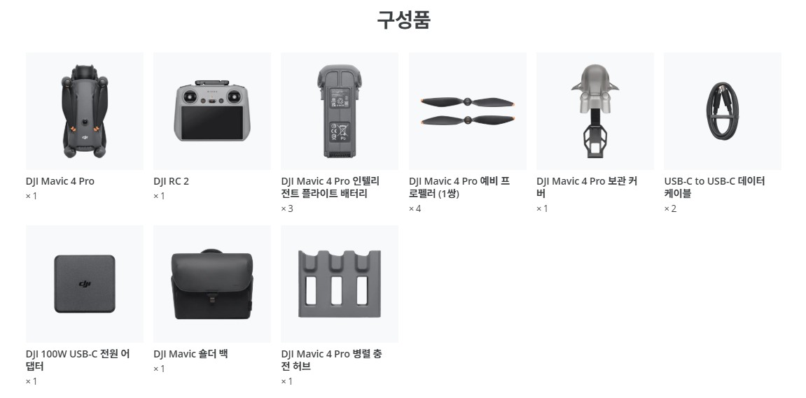 디엔온 DJI Mavic 4 Pro 플라이모어 콤보 (RC 2) 구성품 안내