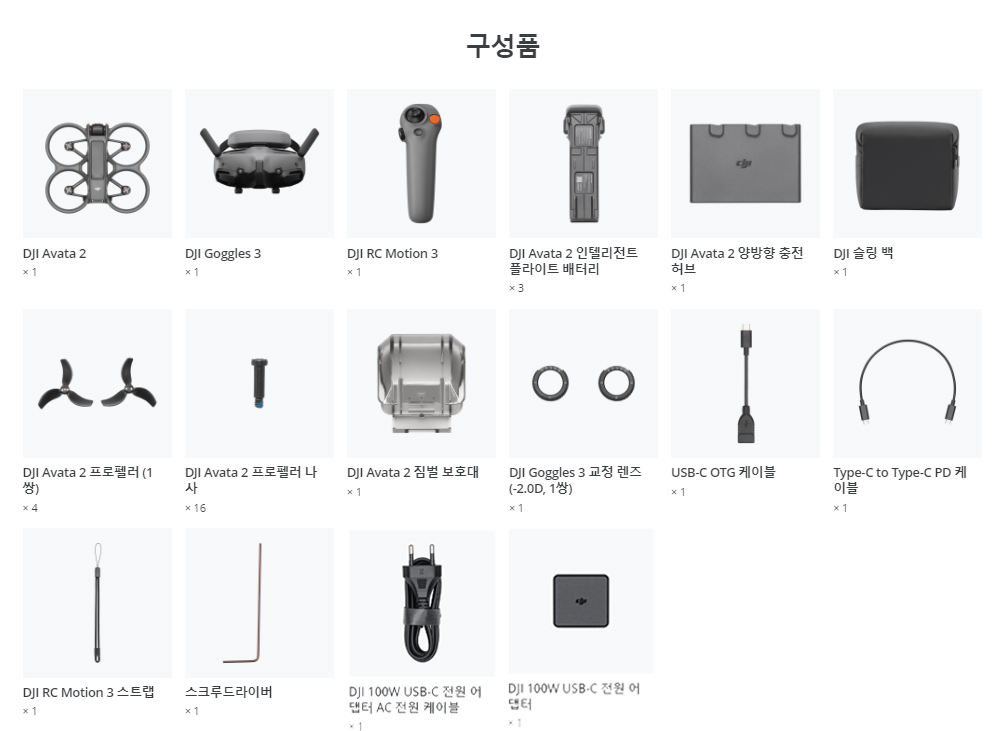DJI 아바타 2 플라이 모어 콤보 (배터리 3개 포함) + DJI 100W 고속 충전기 패키지
